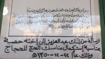 86 عاماً مضت على رسالة من الملك عبدالعزيز لأخته حصة بنت عبدالرحمن يبشّرها باكتمال مناسك الحج للمسلمين بكل يسر وسهولة ويطمئنها برسالة بعثها من مكة إلى الرياض حيث تسكن الأميرة حصة.