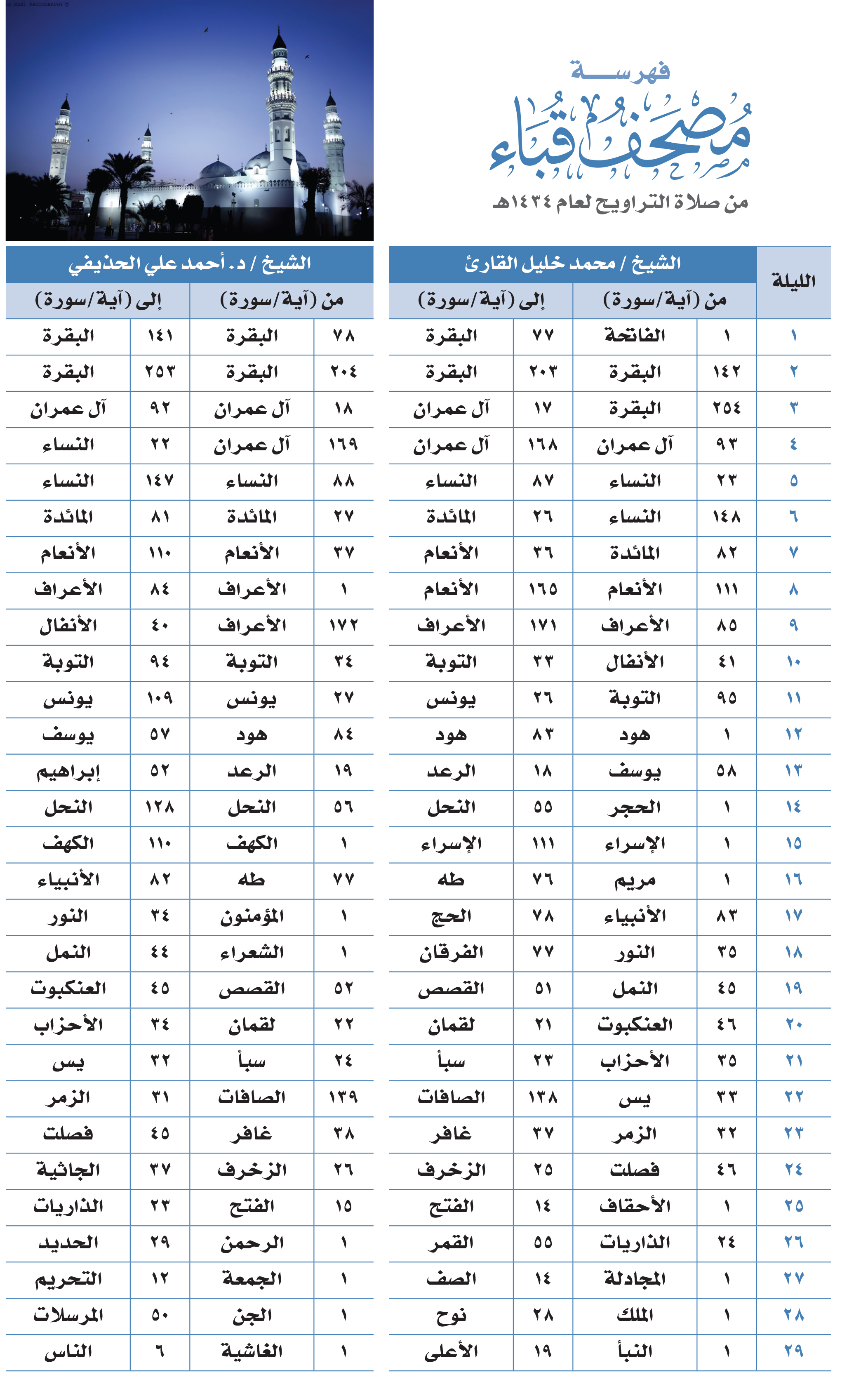 2 مصحف تراويح مسجد قباء 1434 احمد الحذيفي و محمد خليل القارئ بجودة 32-128 برابط 1